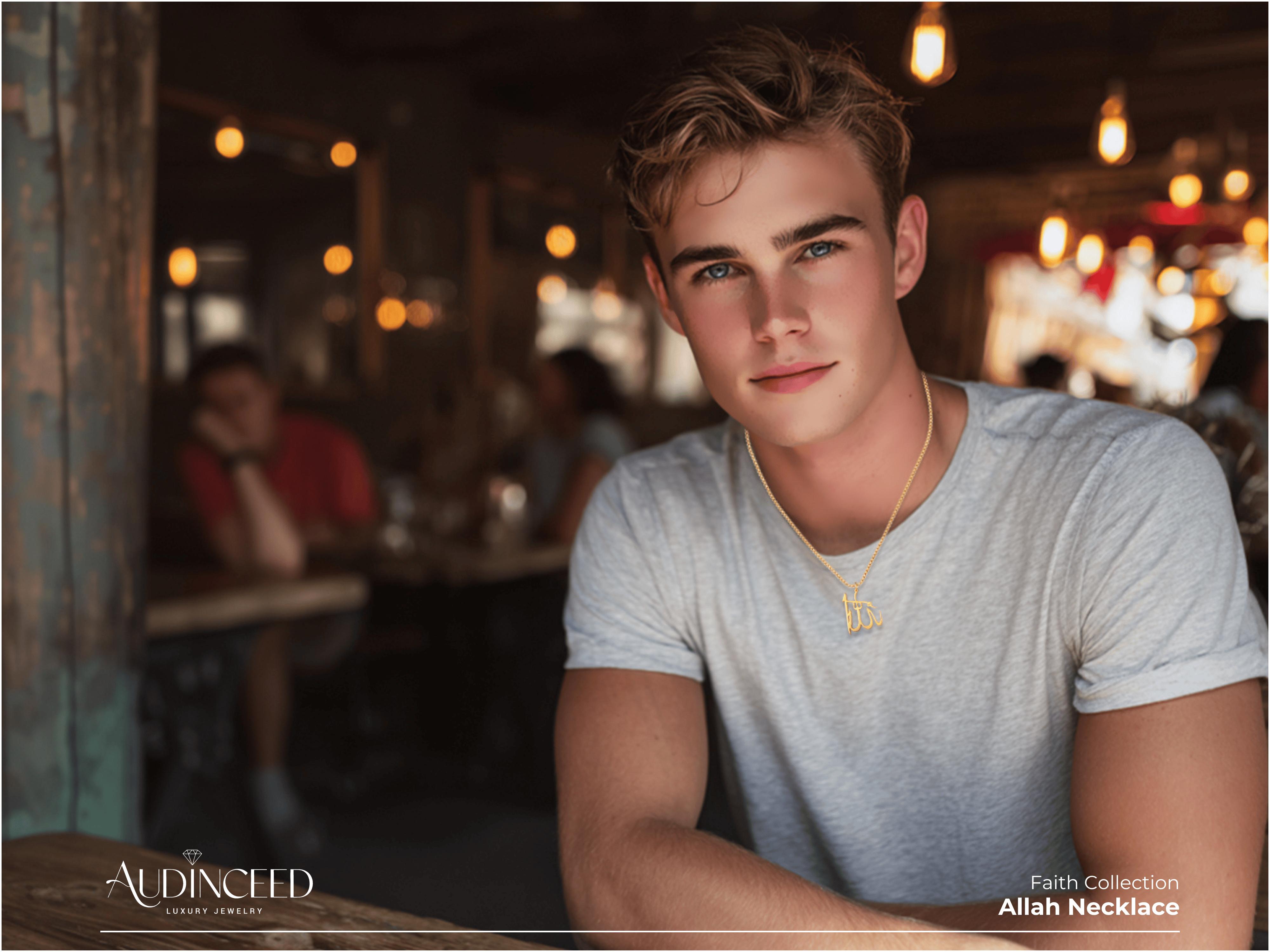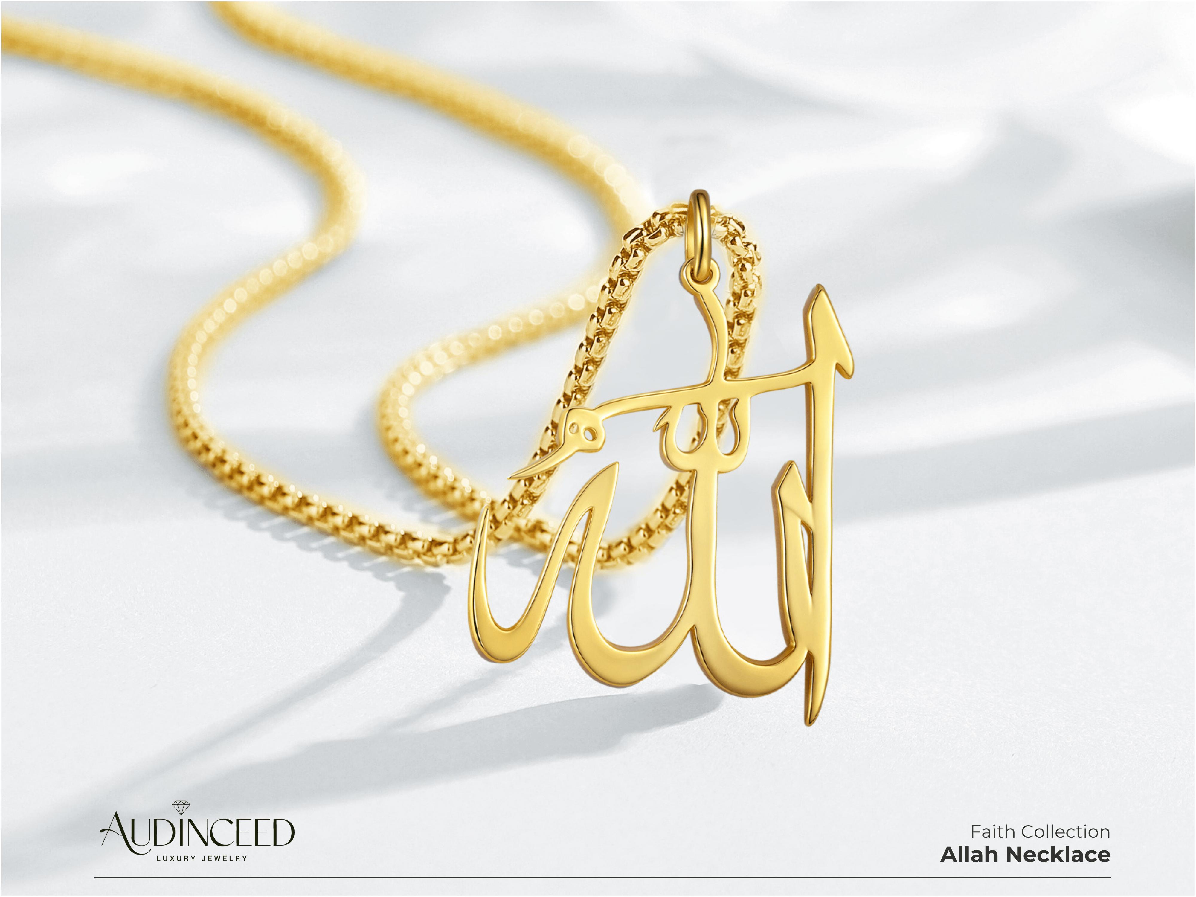 Audinceed Allah Pendant Necklace for Men and Women - 18K Gold-Plated 925 Sterling Silver Islamic Jewelry for Everyday Faith and Gifting