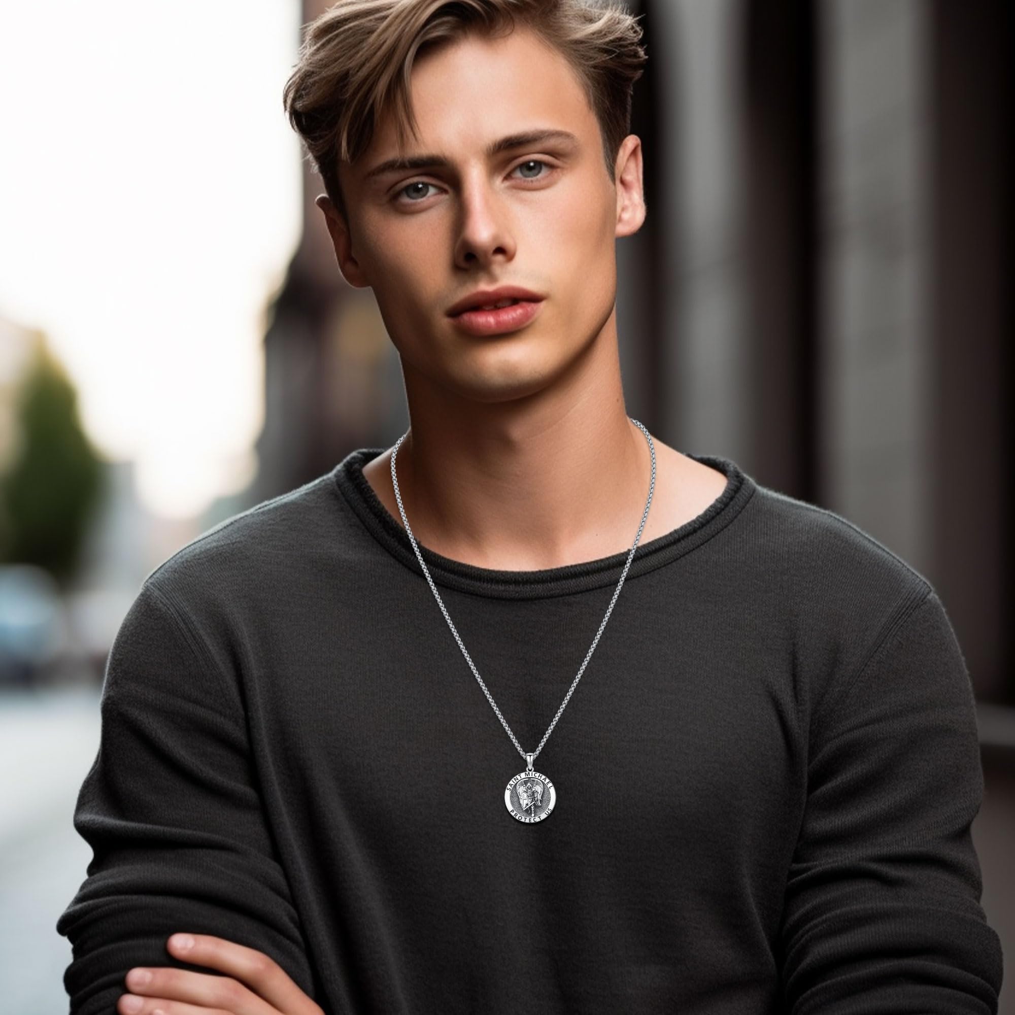 Embrace the power of St Michael with the AUDINCEED Archangel St Michael Pendant Necklace, a meaningful piece of religious jewelry that resonates with those who value courage and protection.