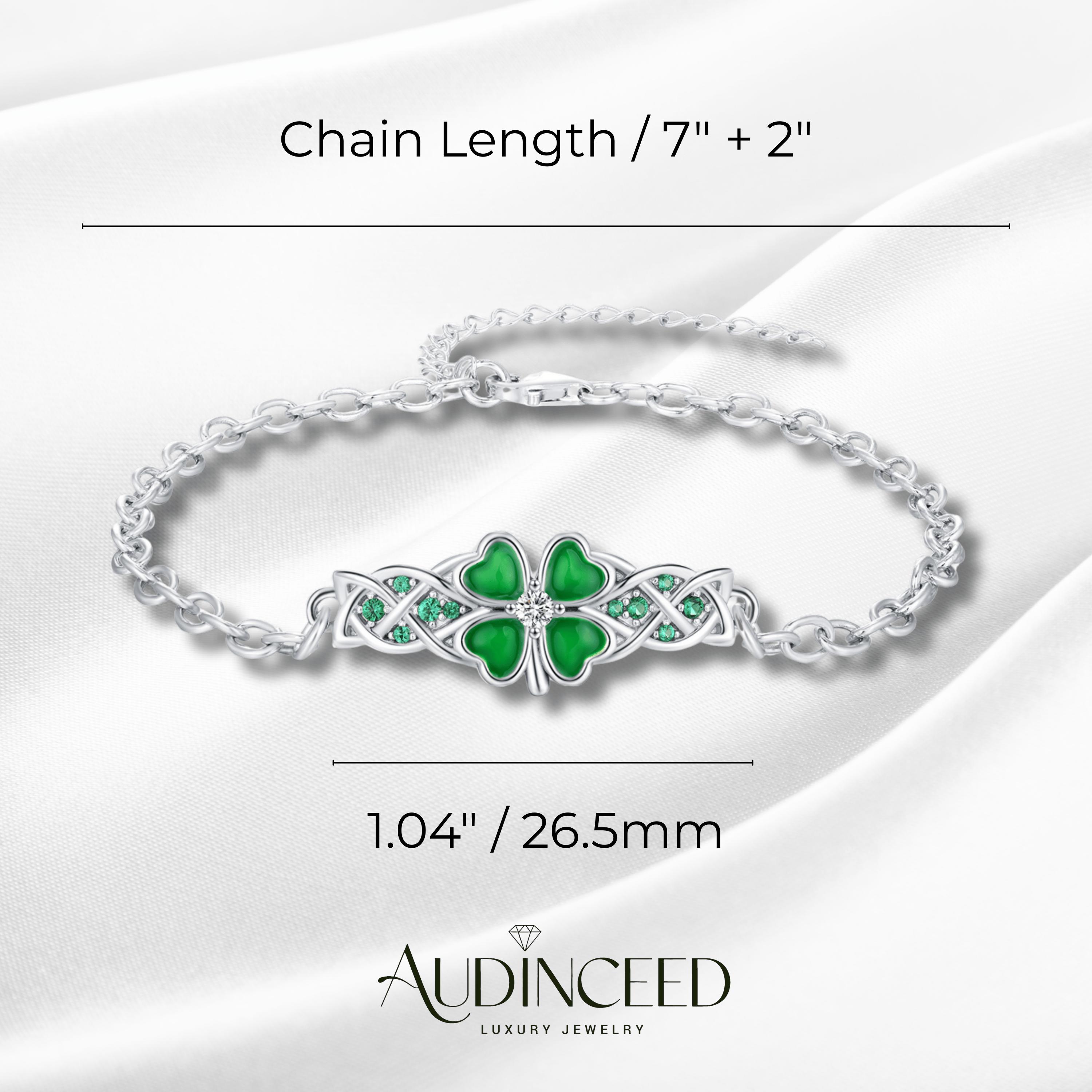 Audinceed Emerald Four‑Leaf Clover | Unisex St. Patrick’s Day Bracelet | S925 Sterling Silver Lucky Charm Jewelry