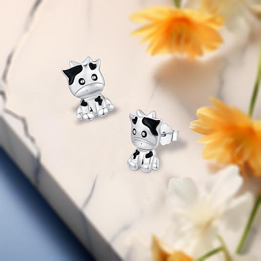 AUDINCEED Cute Cow S925 Sterling Silver Earrings