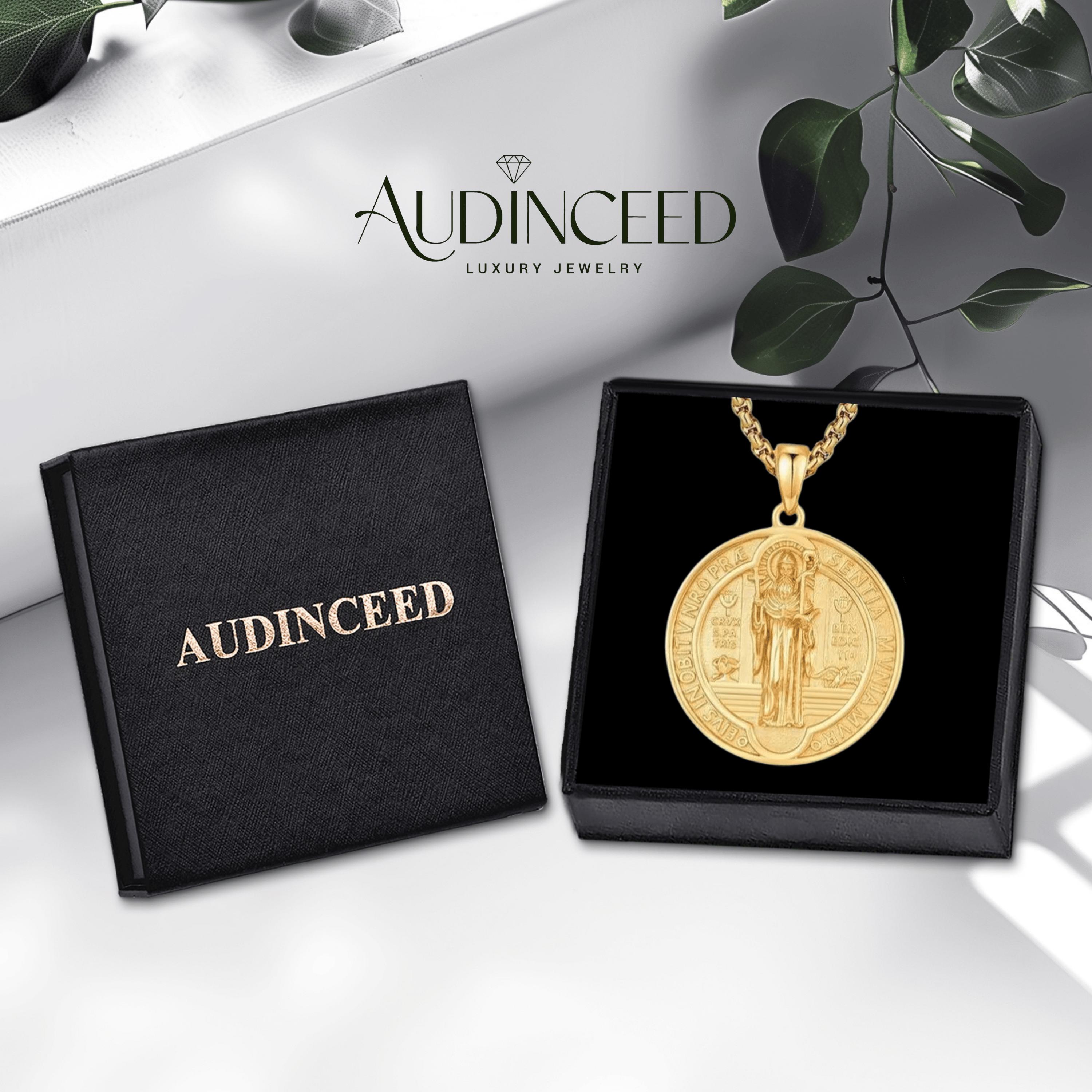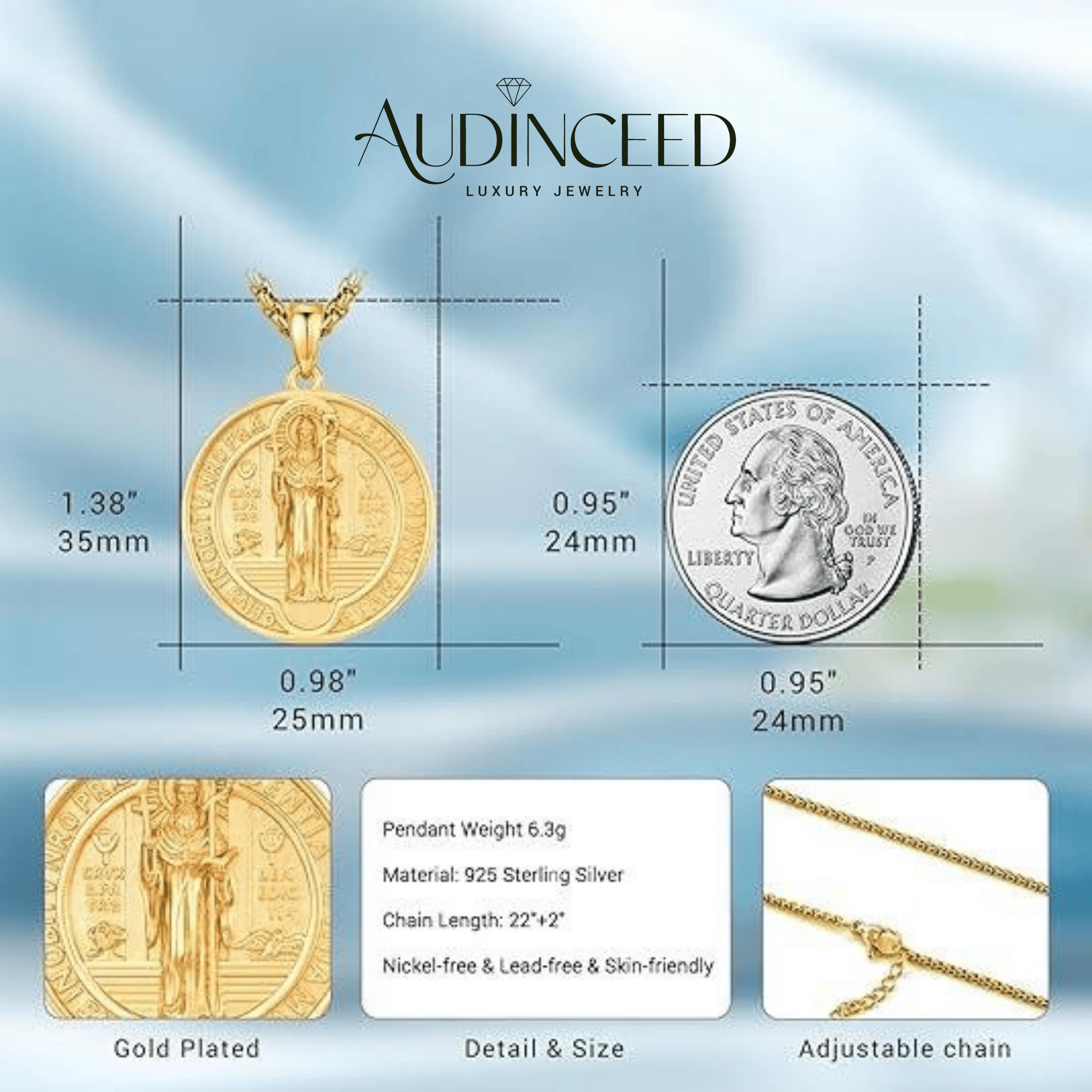 Embrace faith and protection with the Audinceed Saint Benedict Medal Necklace. This thoughtfully crafted piece combines spiritual significance with timeless design, featuring a detailed 925 sterling silver pendant paired with a sturdy chain. It serves as both a powerful symbol of belief and a beautifully elegant accessory for daily wear.