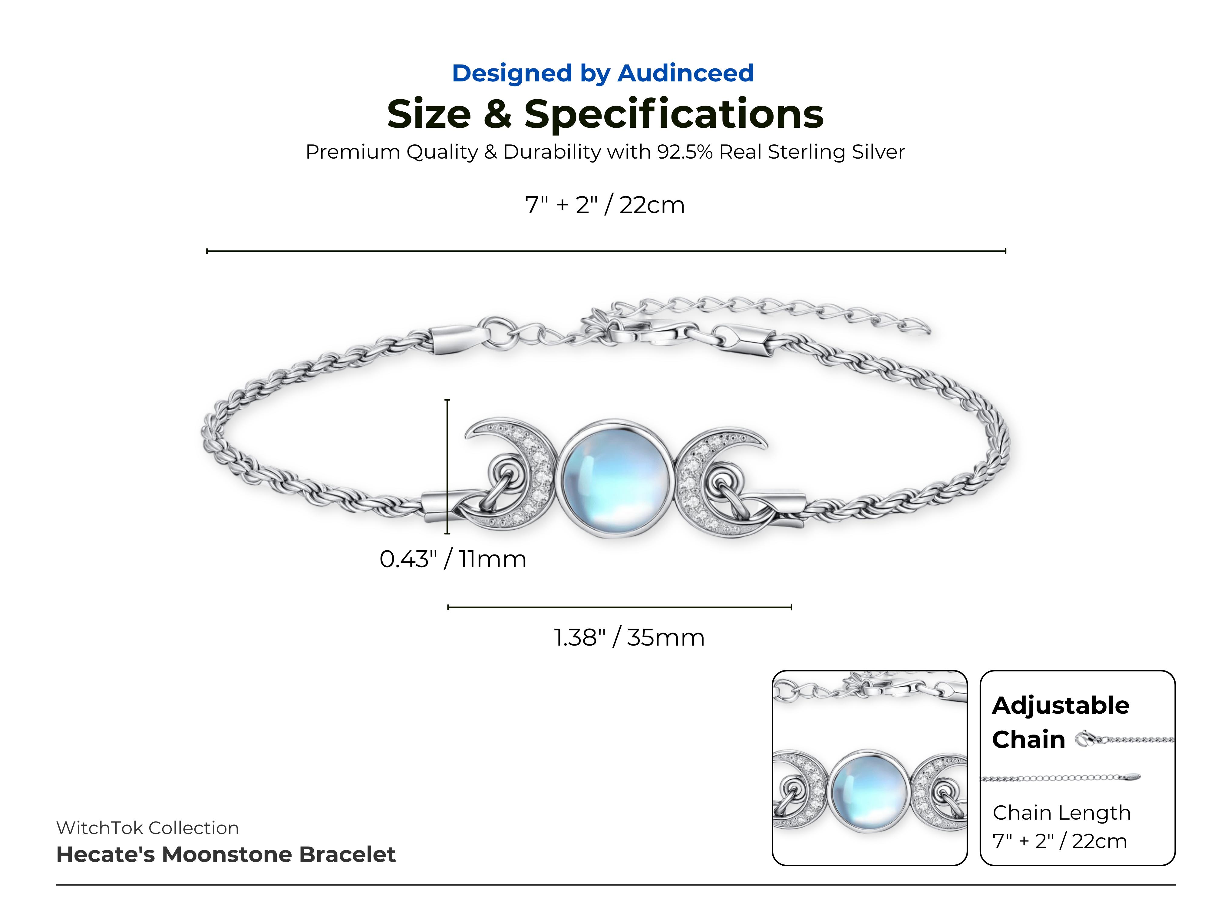 The Audinceed Triple Moon Goddess Protection Bracelet is a stunning piece of spiritual jewelry that combines elegance with meaningful symbolism. This beautifully crafted bracelet features the triple moon symbol, representing the waxing, full, and waning phases of the moon, linked to the goddess Hecate's mystical powers. Made with 925 sterling silver and incorporating the protective energy of moonstone, this bracelet is perfect for women who embrace spirituality, Wicca, and magic.
