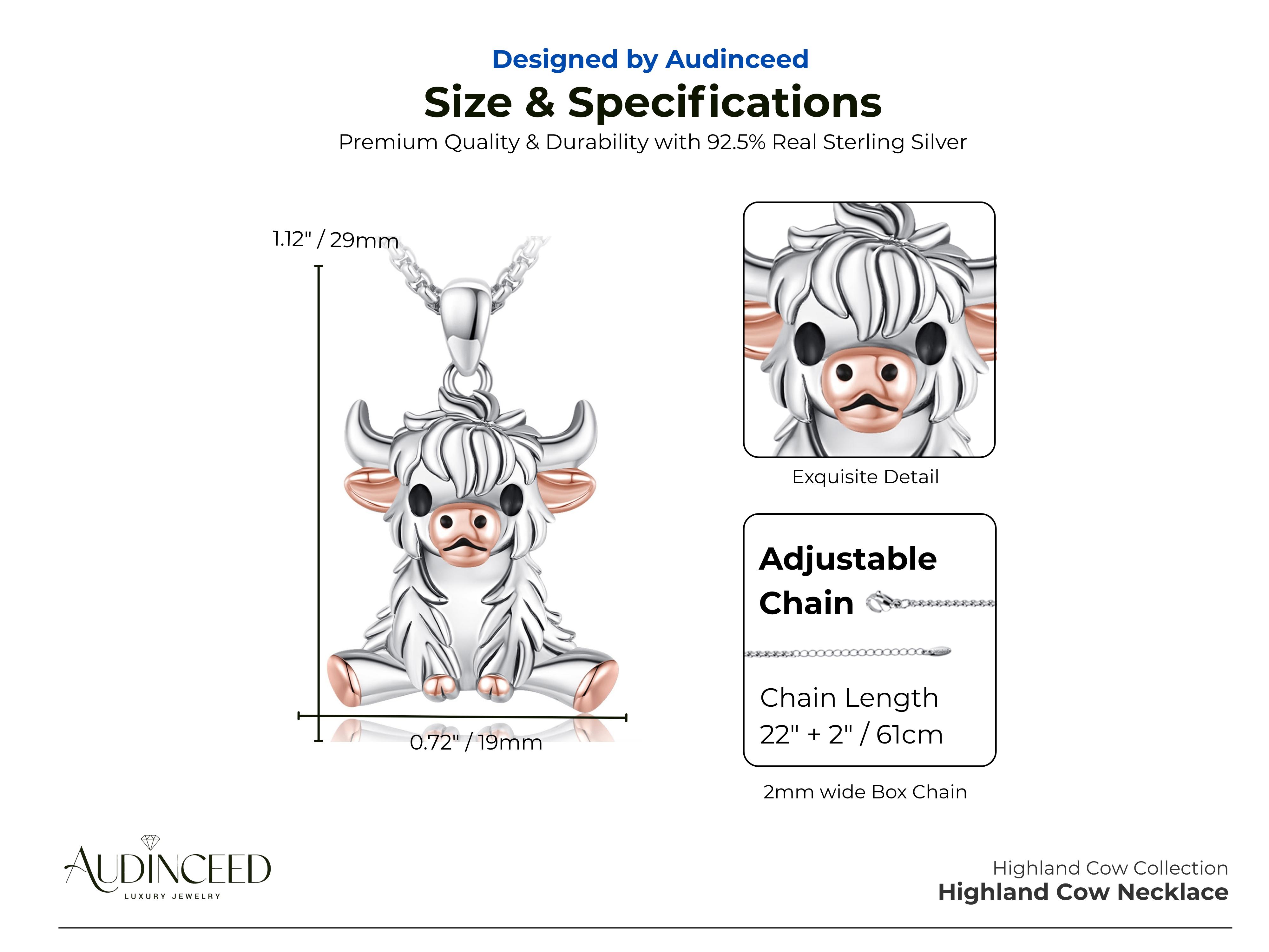 Celebrate your love for animals with the Audinceed Highland Cow Necklace, the perfect accessory for animal lovers. Crafted from 925 Sterling Silver, this necklace adds a unique touch to any outfit while embracing your love for nature.