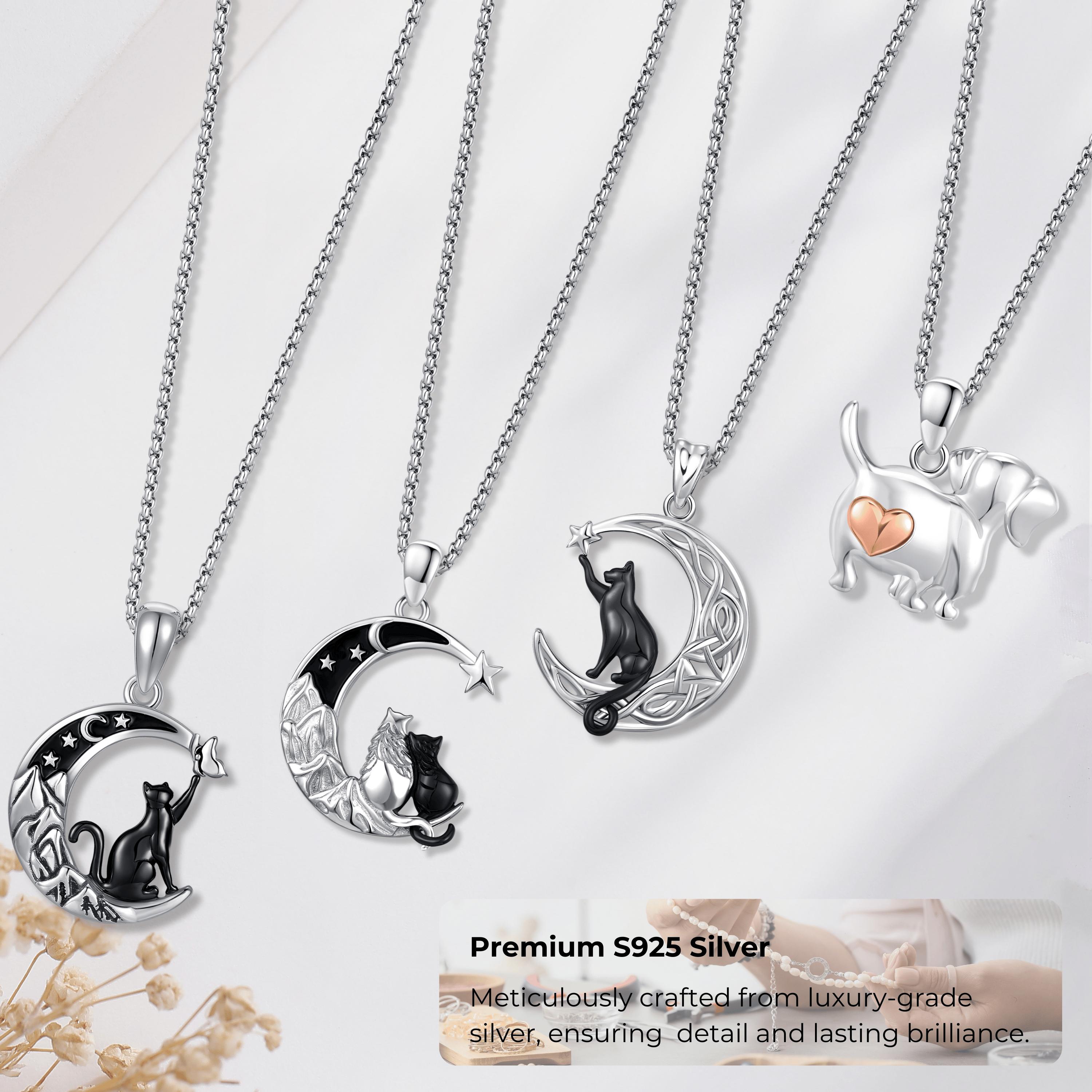 Celebrate your love for pets with our exquisitely crafted sterling silver pet-themed necklace. Whether you're a cat enthusiast drawn to our mystical black cat on crescent moon design or a dog lover charmed by our adorable dachshund pendant, our premium quality 925 sterling silver jewelry perfectly captures the spirit of your beloved animal companion.