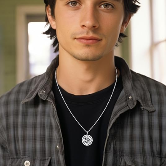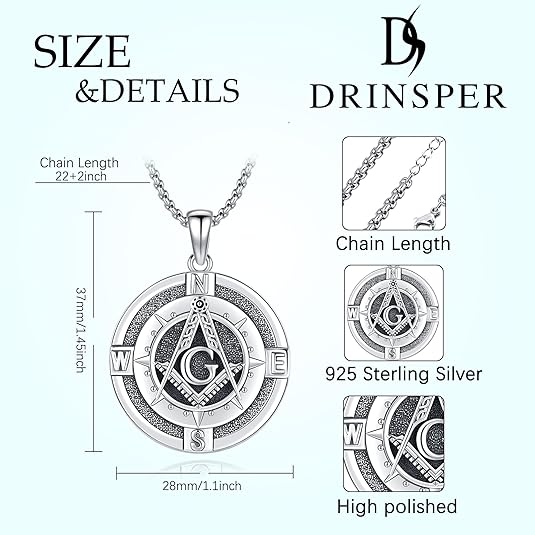 S925 Freemason Charm Necklace 925 Sterling Silver Freemasonry Necklace