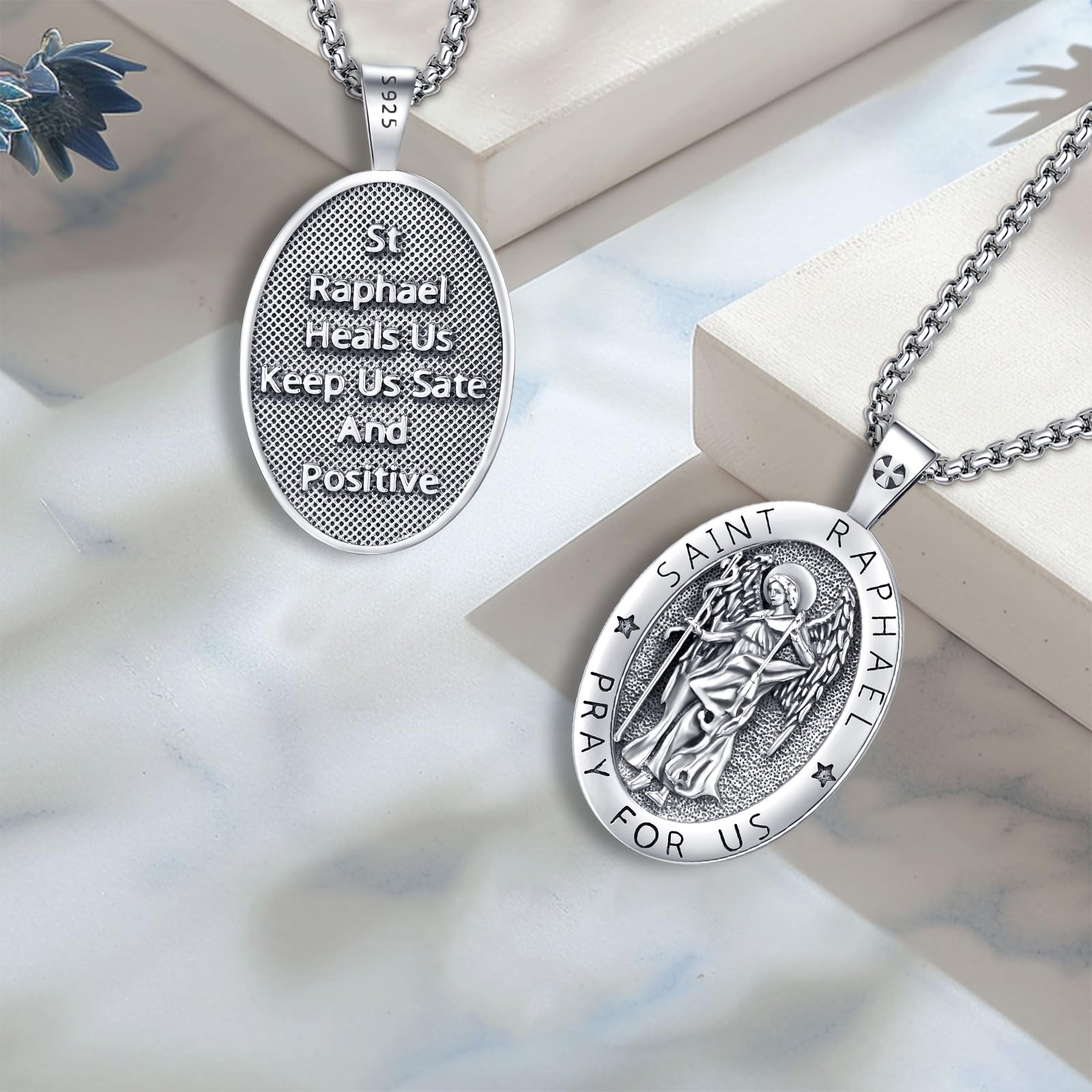S925 Sterling Silver Saint Raphael Pendant