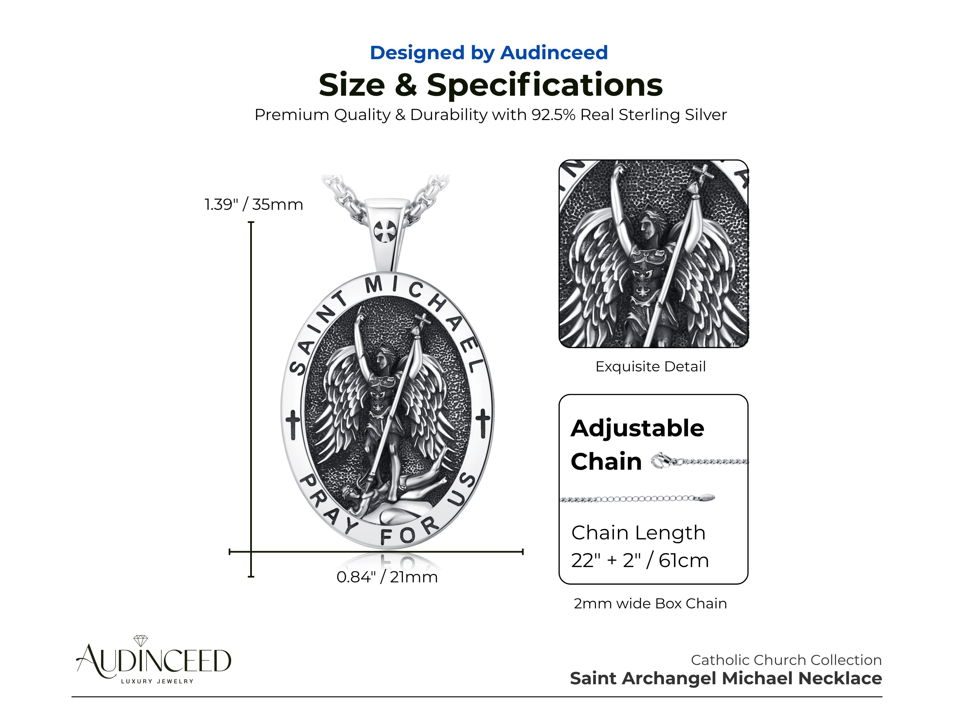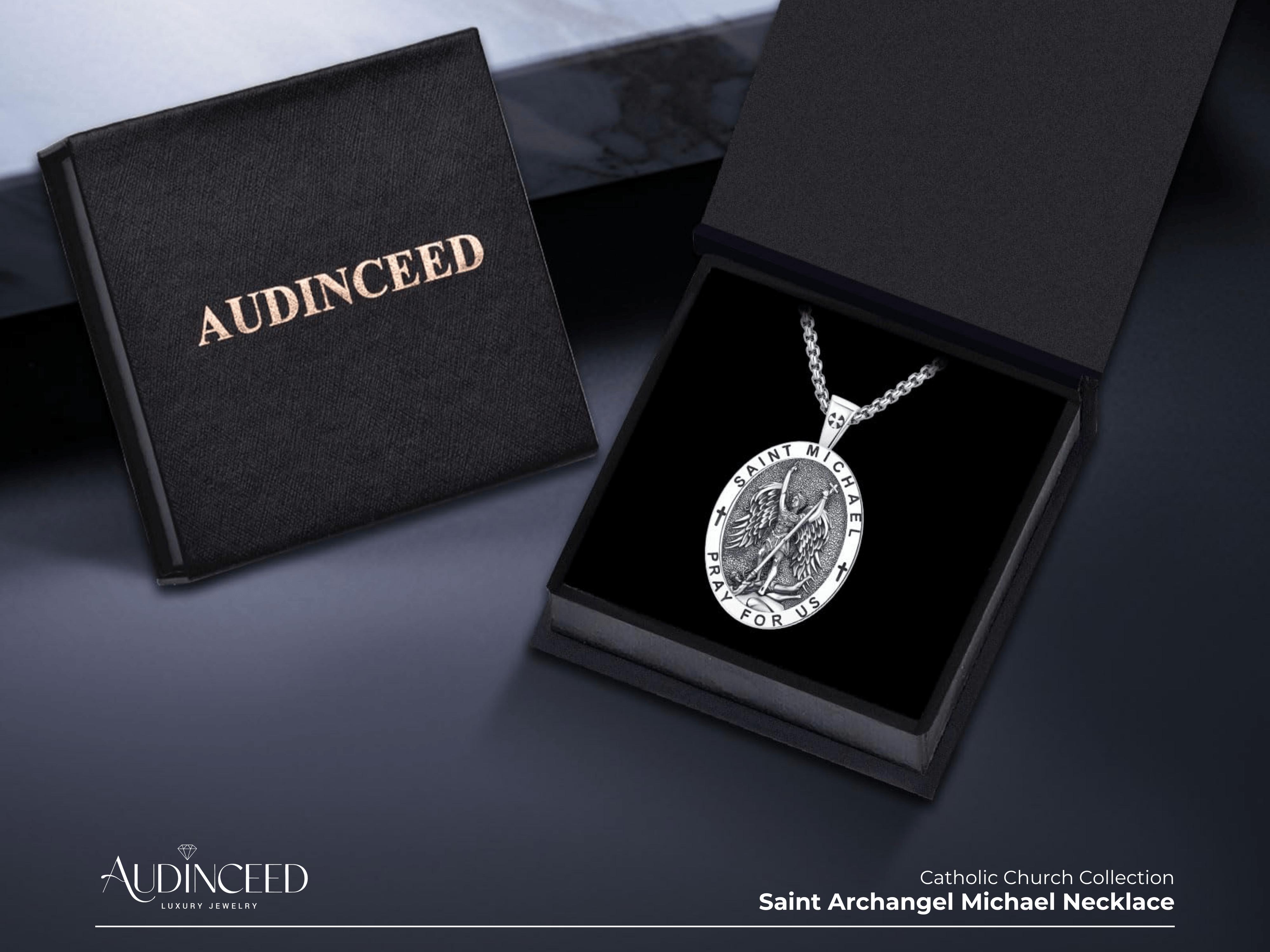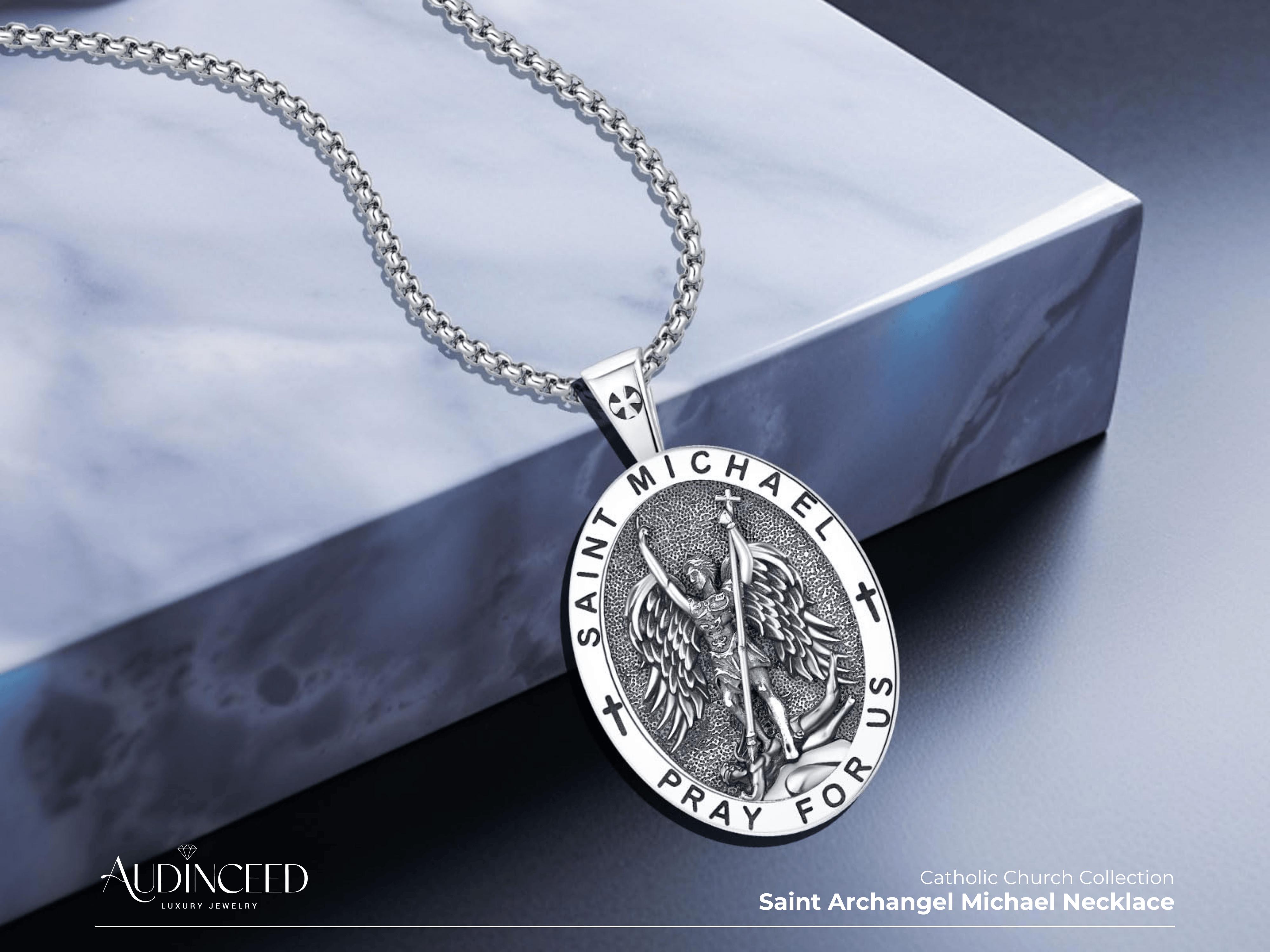 The Audinceed Saint Michael Pendant Necklace is a timeless piece that blends faith with fashion. Made with high-quality 925 Sterling Silver, it features a stunning Archangel Michael pendant, offering protection, guidance, and spiritual strength for both men and women. This necklace is perfect for those who seek a meaningful accessory to carry divine protection.
