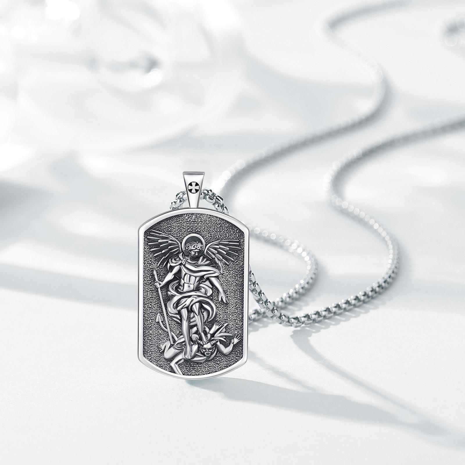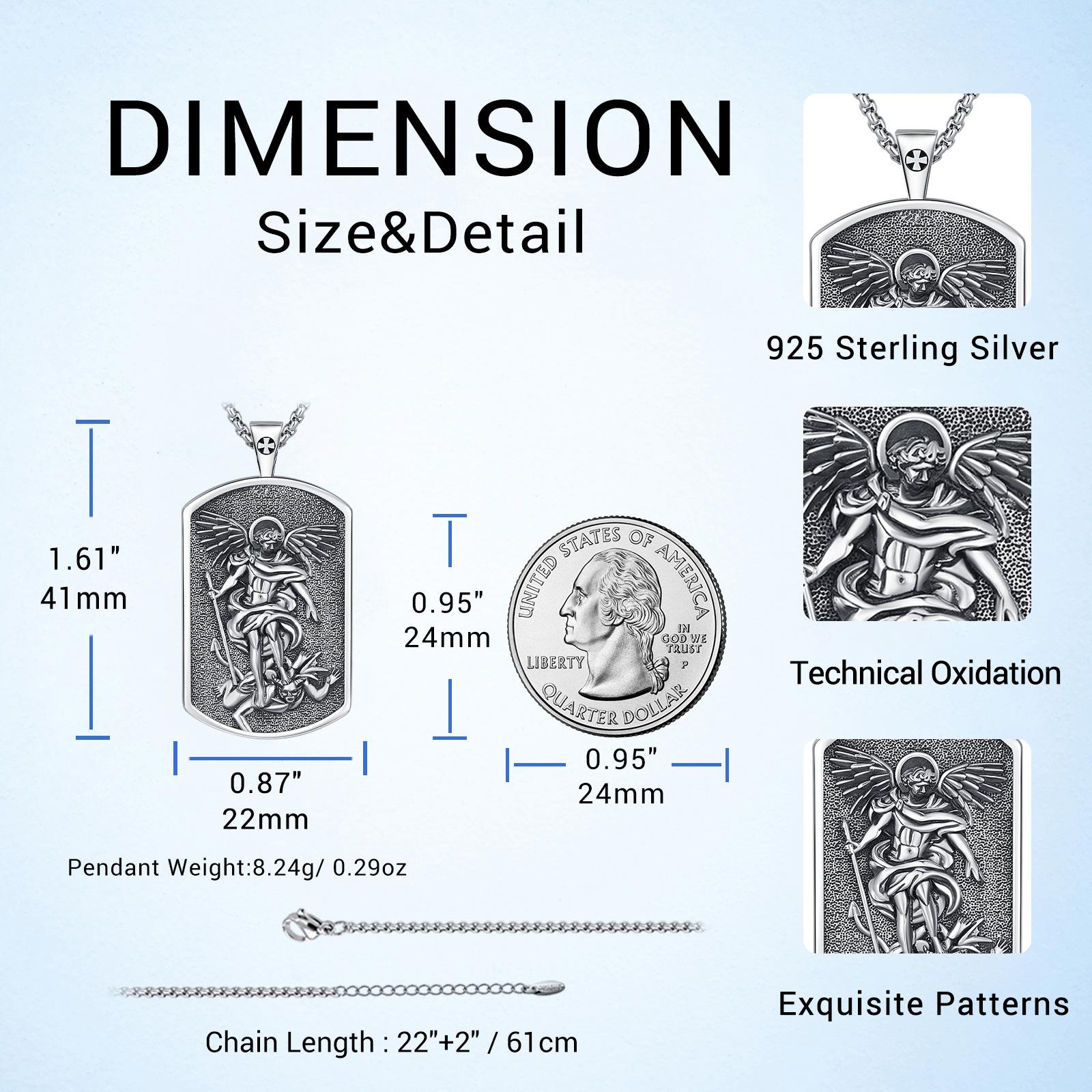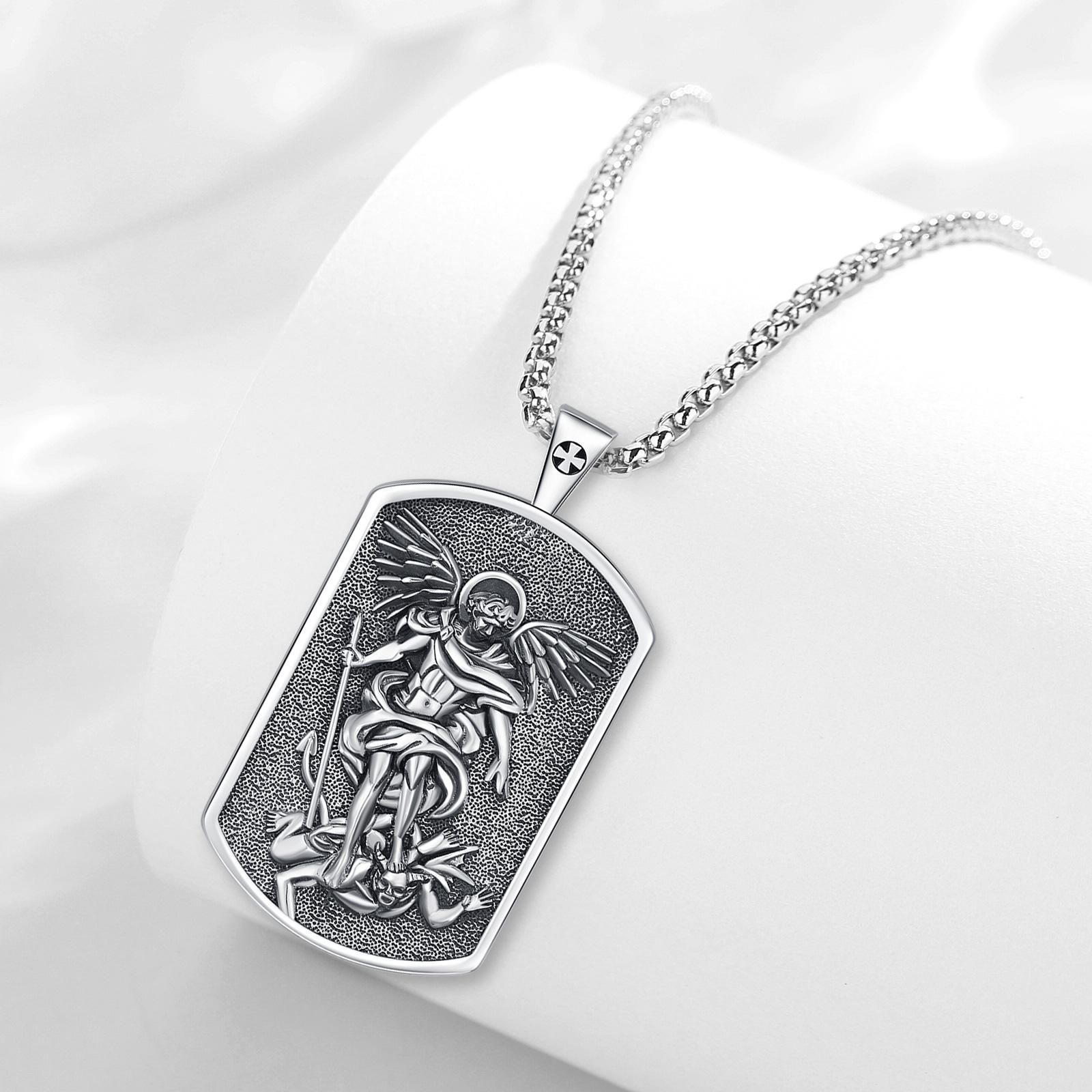 Audinceed Saint Michael Necklace for Men & Women, 925 Sterling Silver Rectangle Saint Archangel Michael Pendant, Patron Courage and Protection Amulet