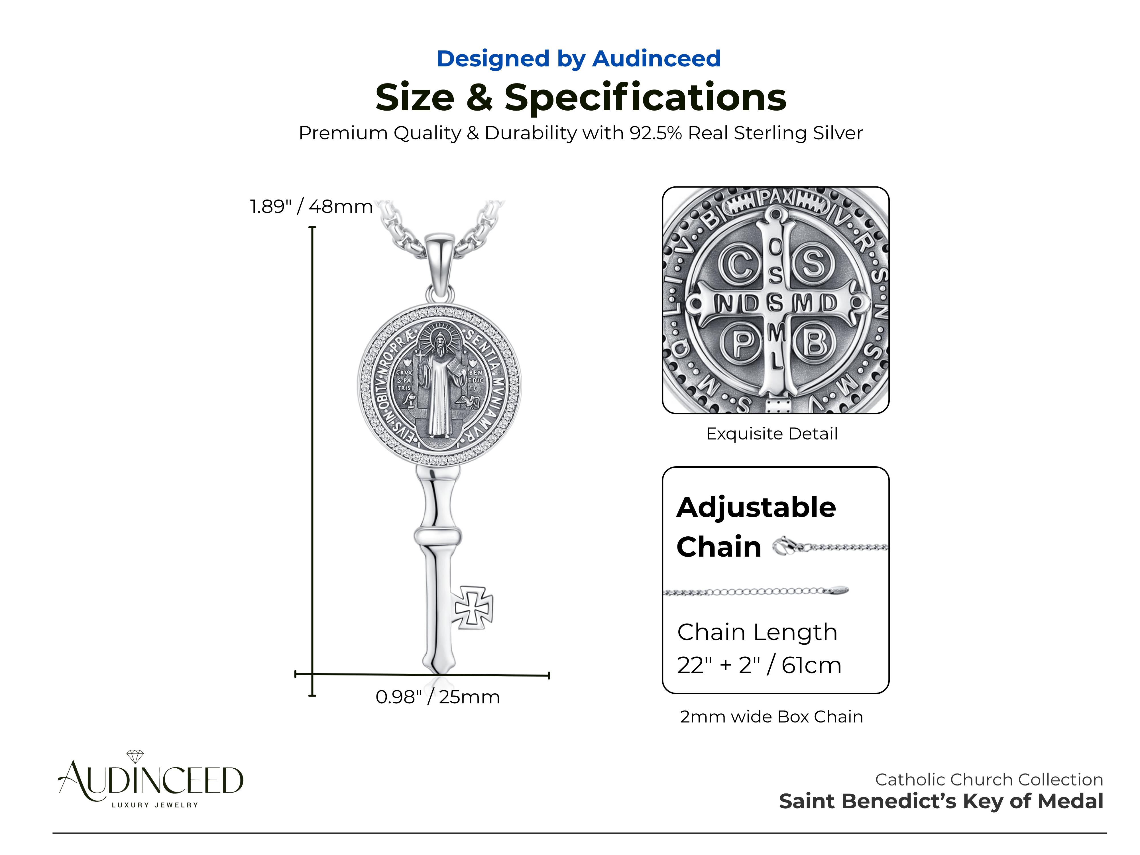 Audinceed St. Benedict Medals Necklace – Medalla de San Benito – 925 Sterling Silver Pendant – Religious Amulet Jewelry for Men and Women