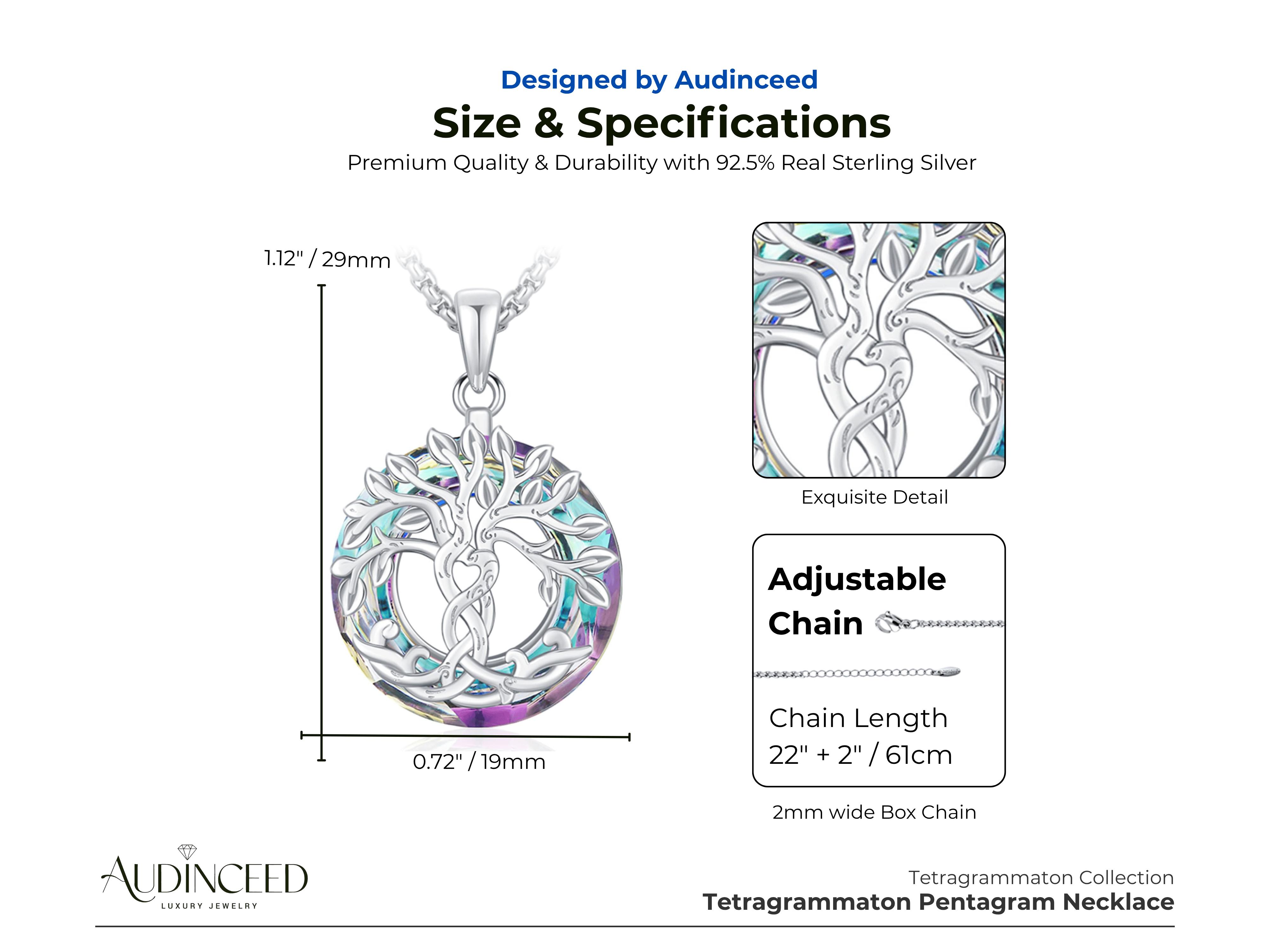 Audinceed Tree of Life Crystal Necklace, S925 Sterling Silver Necklace for Men and Women - Religious and Blessed Jewelry for Special Occasions