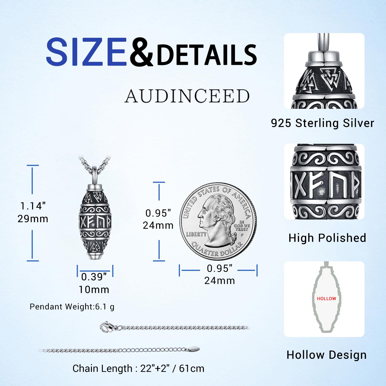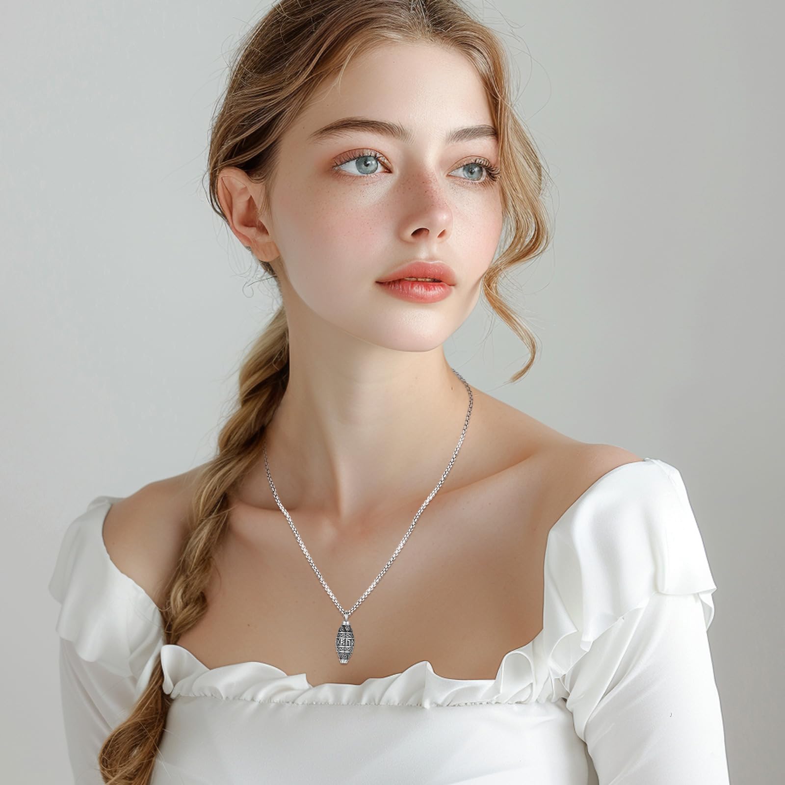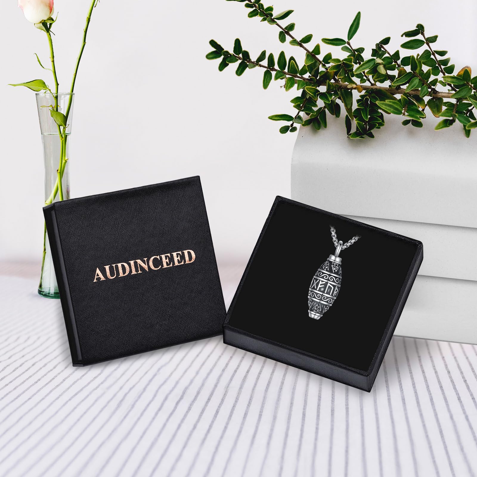AUDINCEED Viking Norse Urn Necklace for Ashes - 925 Sterling Silver Cremation Jewelry