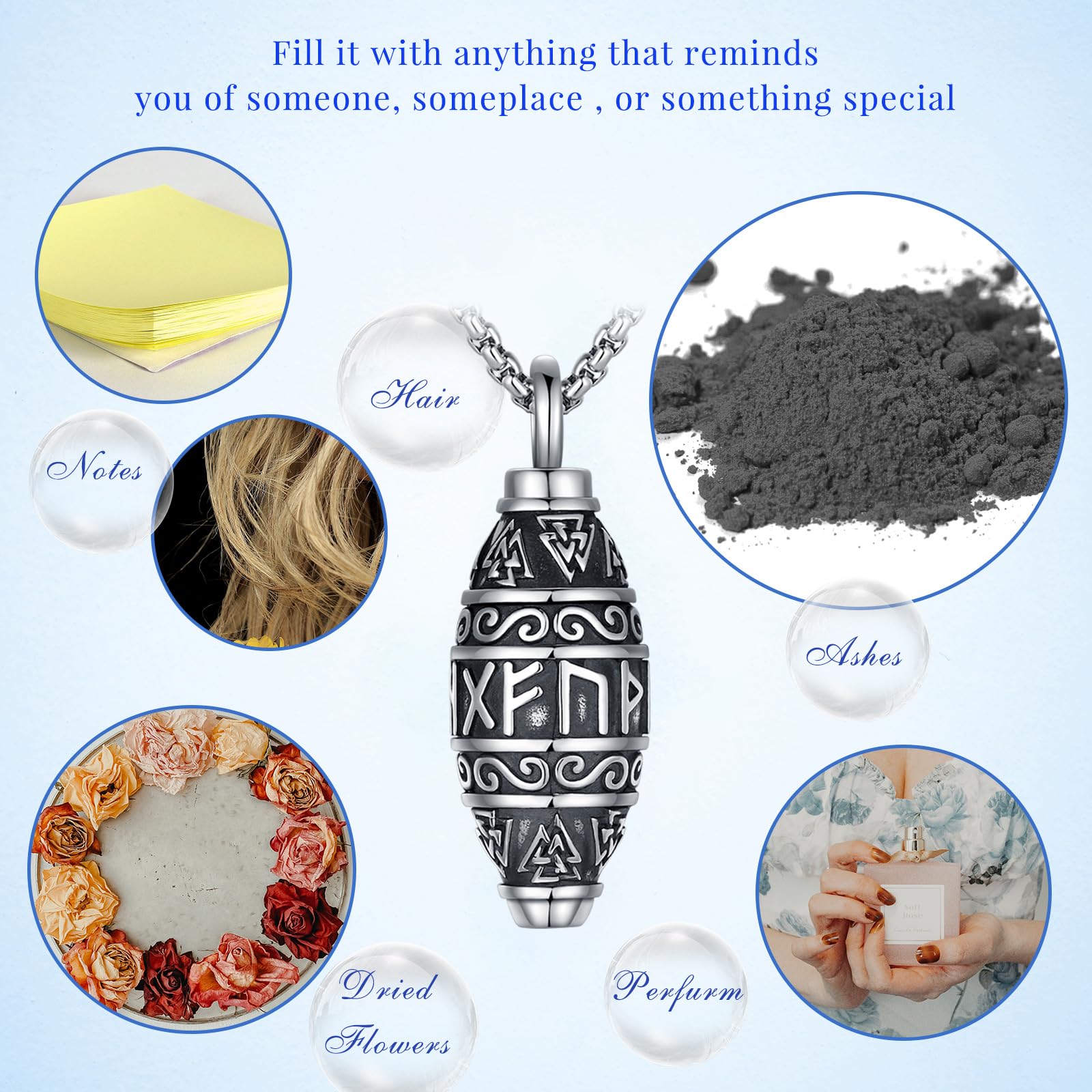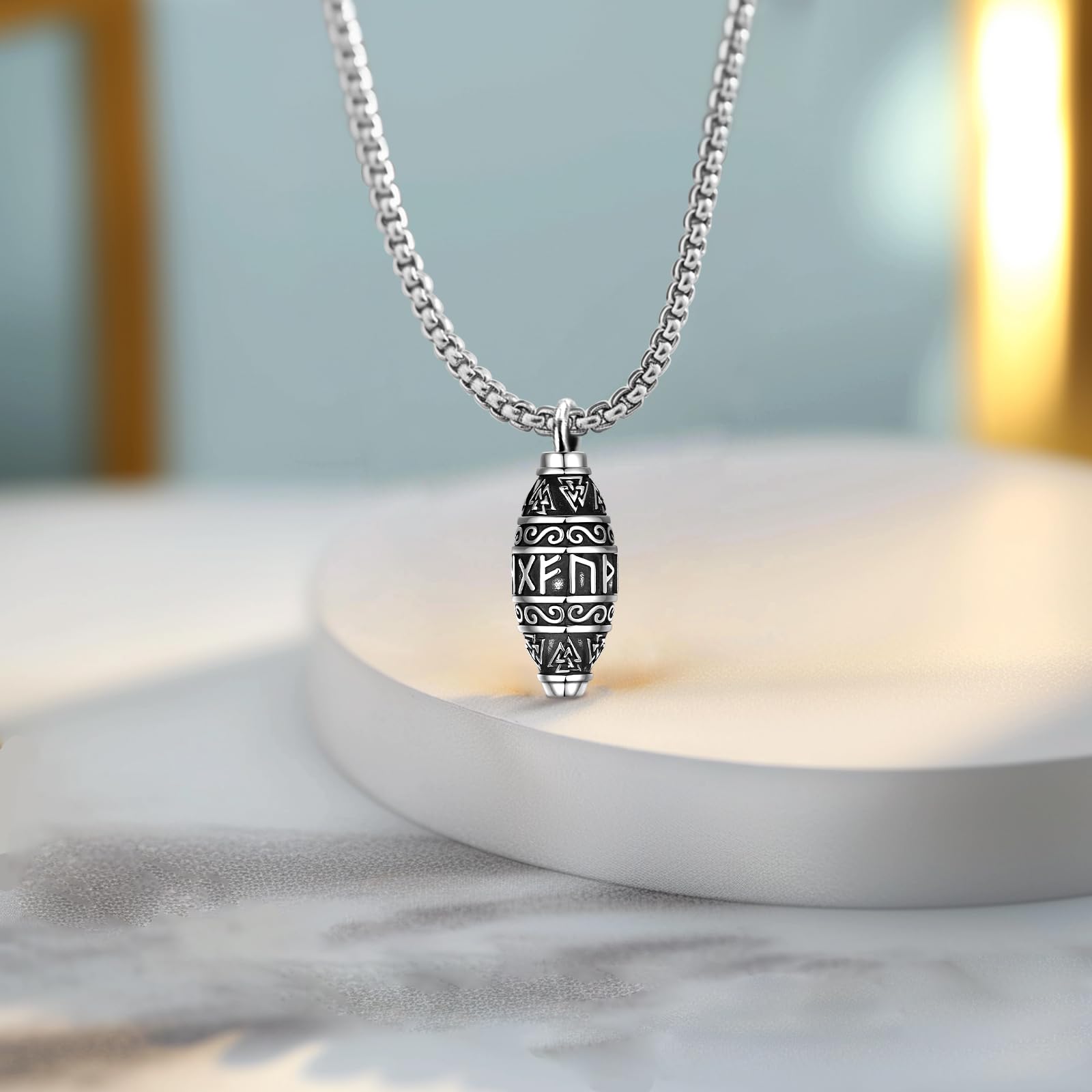 - Viking style cremation necklace can be a special gift to honor our shared memories. Even in times of trouble, this necklace can give us comfort and strength and remind us that he will always beside us and protect us as an guardian angel