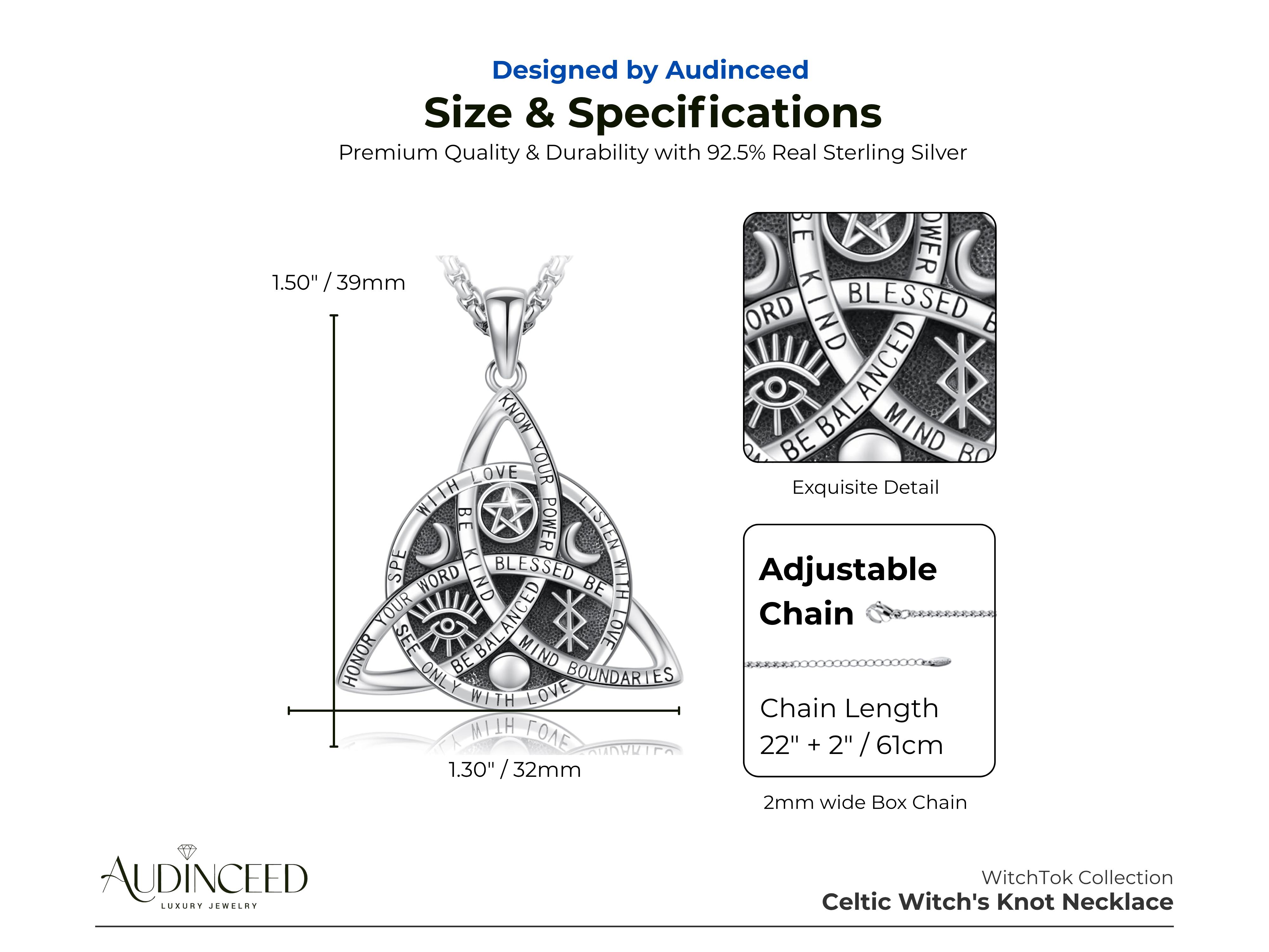 Audinceed Celtic Knot Necklace for Men & Women – Premium 925 Sterling Silver Pendant for Enduring Style & Protection
